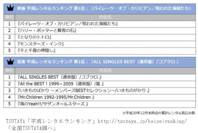 Tsutaya 平成レンタルランキング を発表 日本経済新聞
