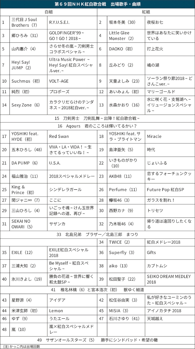Nhk紅白の曲順18年版 タイムテーブル 時間割 や曲目も確認